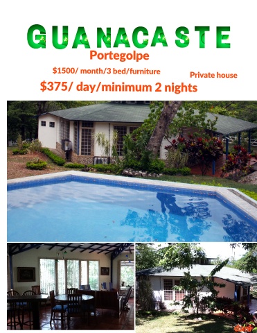 Portegolpe $1500/ month/3 bed/furniture Private house $375/ day/minimum 2 nights dani F d C