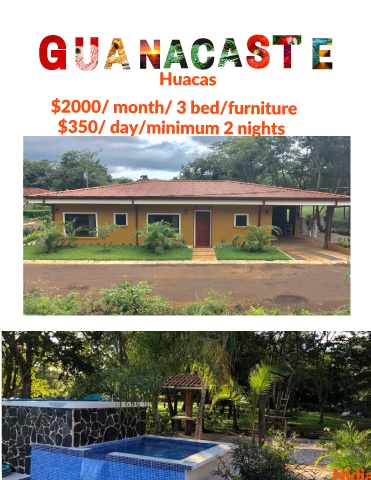 Huacas $2000/ month/ 3 bed/furniture $350/ day/minimum 2 nights Nidia