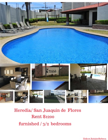 Heredia/ San Juaquin de Flores Rent $1200 furnished / 3/2 bedrooms Helcor,ReinierRebeca