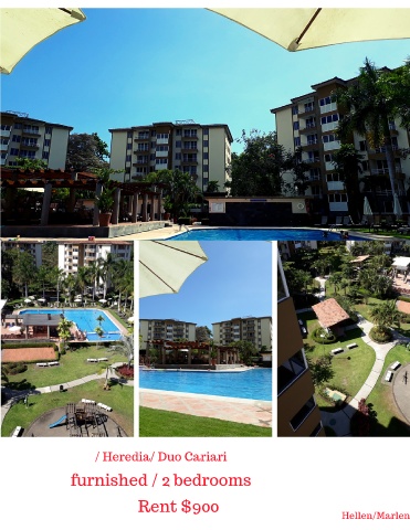 / Heredia/ Duo Cariari furnished / 2 bedrooms Rent $900 Hellen/Marlen