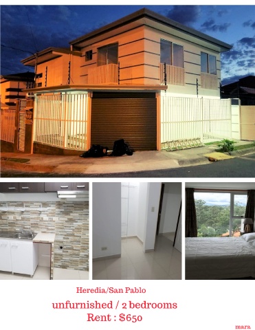 Heredia/San Pablo unfurnished / 2 bedrooms Rent : $650 mara