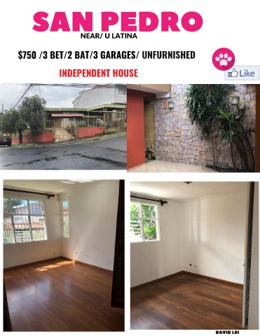 $750 /3 BET/2 BAT/3 GARAGES/ UNFURNISHED