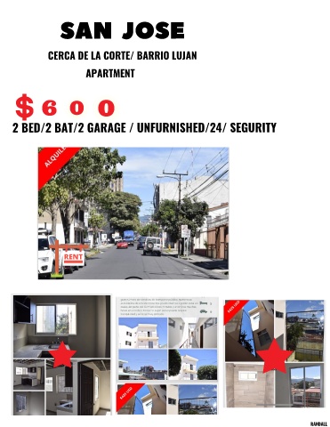 SAN JOSE CERCA DE LA CORTE/ BARRIO LUJAN APARTMENT 2 BED/2 BAT/2 GARAGE / UNFURNISHED/24/ SEGURITY RANDALL