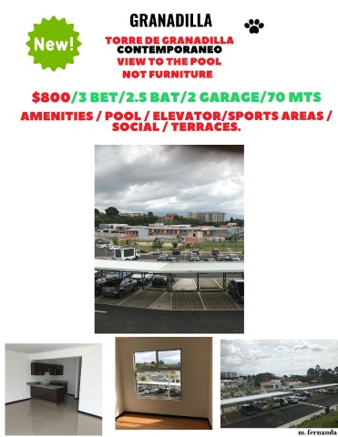 GRANADILLA TORRE DE GRANADILLA CONTEMPORANEO VIEW TO THE POOL NOT FURNITURE $800/3 BET/2.5 BAT/2 GARAGE/70 MTS AMENITIES / POOL / ELEVATOR/SPORTS AREAS / SOCIAL / TERRACES . m. fernanda