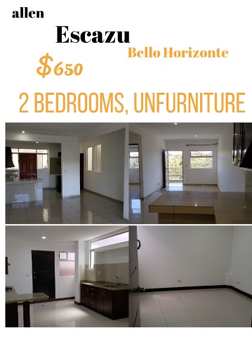 2 BEDROOMS, UNFURNIT allen URE Escazu Bello Horizonte $650