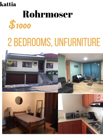 2 BEDROOMS, UNFURNIT kattia URE Rohrmoser $1000