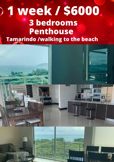 1 week / $6000 3 bedrooms Penthouse Tamarindo /walking to the beach