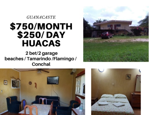 GUANACASTE $750/MONTH $250/ DAY HUACAS 2 bet/ garage beaches / Tamarindo /Flamingo / Concha l