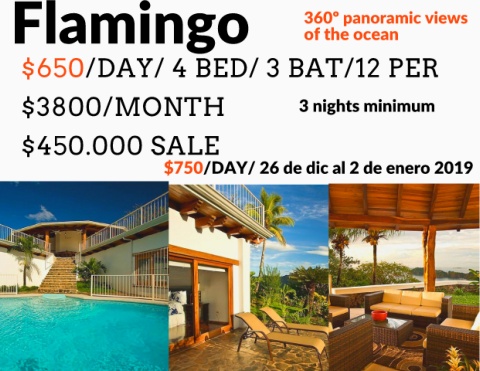 Flamingo 360º panoramic views of the ocean $650/DAY/ 4 BED/ 3 BAT/12 PER $3800/MONTH 3 nights minimum $450.000 SALE $750/DAY/ 26 de dic al 2 de enero 2019