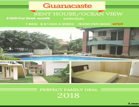 Guanacaste RENT HOUSE/OCEAN VIEW $ 500 For Rent month SARDINAL 1 BED/ $ $1400 A WEEK /$200 PER NIGH 4PER PERFECT FAMILY DEAL 2018 5.mar