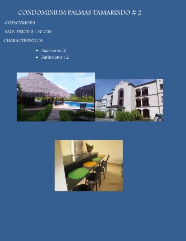 CONDOMINIUM PALMAS TAMARINDO # 2 COD:CVMO89 SALE PRICE: $ 130.000 CHARACTERISTICS: • Bedrooms: 2 • Bathrooms : 2