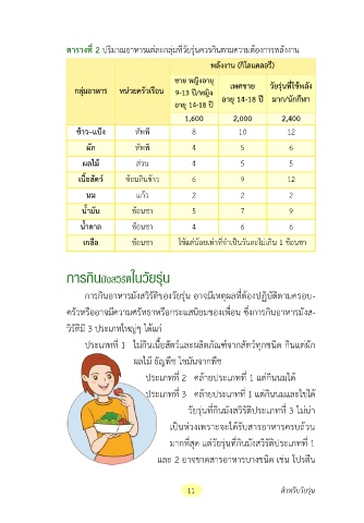 ตารางที่ 2 ปริมาณอาหารแต่ละกลุ่มที่วัยรุ่นควรกินตามความต้องการพลังงาน