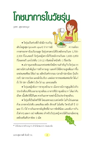 ถั่วต่างๆ และงา อย่างเพียงพอ ส าหรับวัยรุ่นหญิงควรได้รับยาเม็ดธาตุ