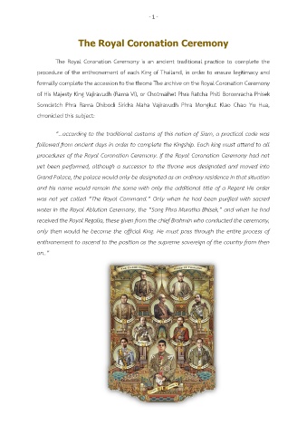 procedures of the Royal Coronation Ceremony. If the Royal Coronation Ceremony had not