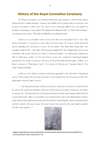 Evidence of the Royal Coronation Ceremony appeared in the chronicle of Ayutthaya