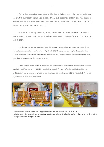 During the coronation ceremony of King Maha Vajiralongkorn, the sacred water was