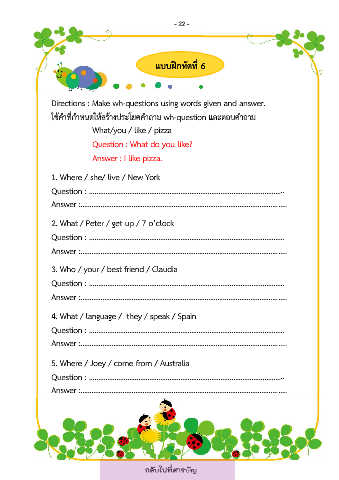 ใชคําที่กําหนดใหสรางประโยคคําถาม wh-question และตอบคําถาม