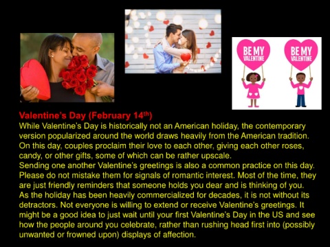 might be a good idea to just wait until your first Valentine’s Day in the US and see
