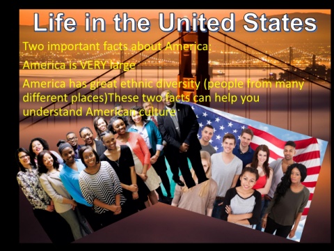 Two important facts about America: America is VERY large America has great ethnic diversity (people from many different places)These two facts can help you understand American culture