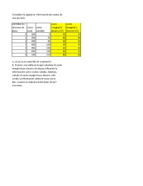 Considere la siguiente información de costos de