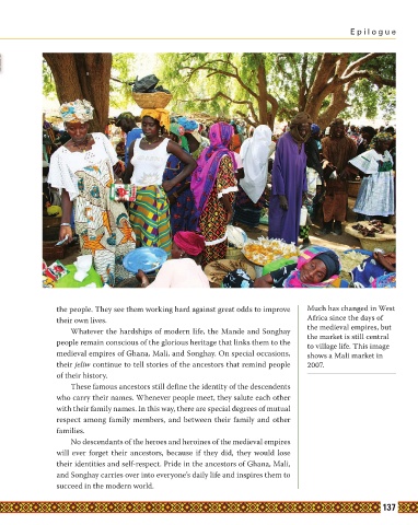 medieval empires of Ghana, Mali, and Songhay. On special occasions, shows a Mali market in