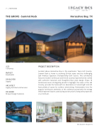 Located above Horseshoe Bay in the spectacular Texas Hill Country, Summit Rock is home to stunning 30-mile views and the challenging Jack Nicklaus Signature Championship Golf Course. This community features modern farmhouse and french country inspired homes crafted with authentic materials and thoughtful oor plan design. These 18 farmhouses were strategically placed to highlight the views of the Hill Country, provide the home with an abundance of natural light and still leave plenty of space for outdoor entertaining. Homeowners love the popular farmhouse aesthetics of this collection paired with the energy e cient green features used during construction to keep utility expenses at a minimum.