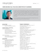 Chris Moore, CEO has been with DTJ since 1998, and is instrumental in the growth of DTJ’s national and international design practice. He specializes in concept visioning, master planning and site speci c planning and landscape architecture with a unique ability to blend architecture and landscape architecture into a complete, livable environment. Chris is committed to designing quality residential, resort, and mixed-use places that are strategically positioned within the market.