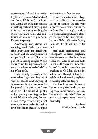 and “mundu” (dhoti) to school. ter in my life and the valuable
