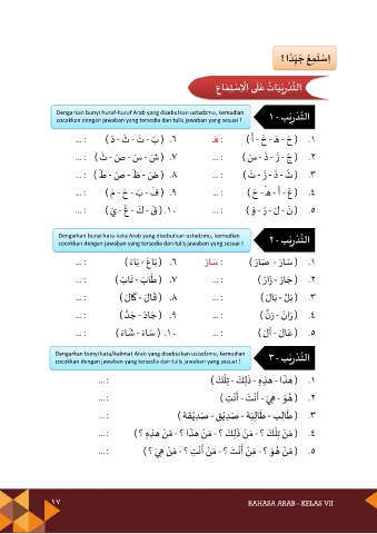 Dengarkan bunyi kata/kalimat Arab yang disebutkan ustadzmu, kemudian - ٣ بيردتلا