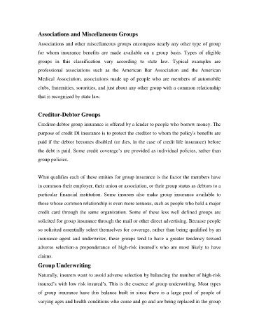 insured‘s with low risk insured‘s. This is the essence of group underwriting. Most types