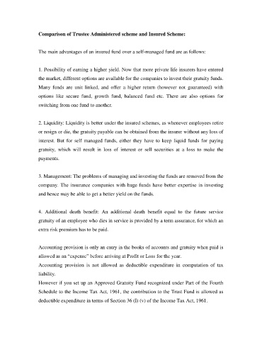 Comparison of Trustee Administered scheme and Insured Scheme: