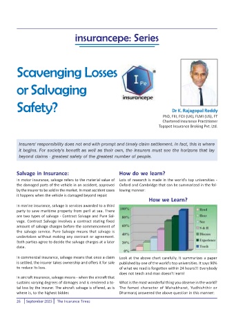 In motor insurance, salvage refers to the material value of Lots of research is made in the world's top universities -