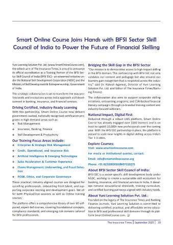 its official accreditation as a Training Partner of the BFSI Sec- in the BFSI domain. This partnership with BFSI SSC not only