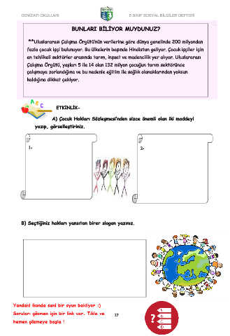 A) Çocuk Hakları Sözleşmesi’nden sizce önemli olan iki maddeyi