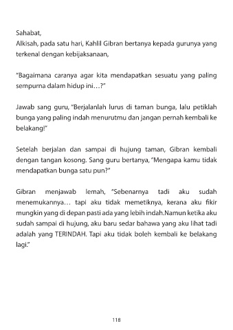 Jawab sang guru, “Berjalanlah lurus di taman bunga, lalu petiklah