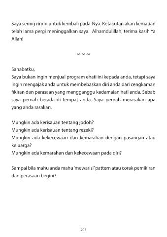 Saya sering rindu untuk kembali pada-Nya. Ketakutan akan kematian