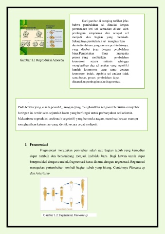Gambar 1.1 Reproduksi Amoeba kromosom secara mitosis sehingga