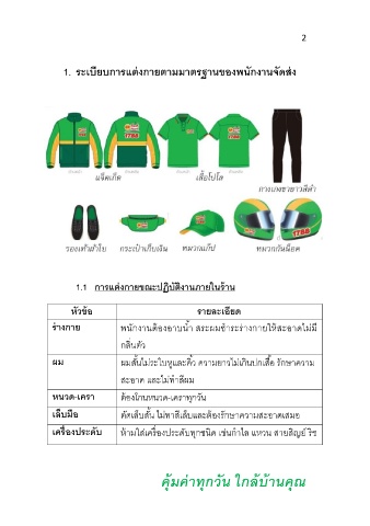 1. ระเบียบการแต่งกายตามมาตรฐานของพนักงานจัดส่ง