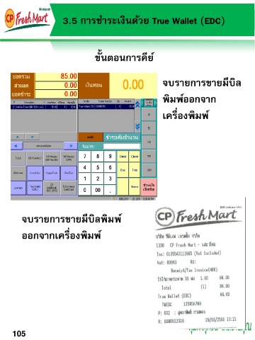 3.5 กำรช ำระเงินด้วย True Wallet (EDC) ขั้นตอนกำรคีย์ จบรำยกำรขำยมีบิล พิมพ์ออกจำก เครื่องพิมพ์ จบรำยกำรขำยมีบิลพิมพ์ ออกจำกเครื่องพิมพ์ 105