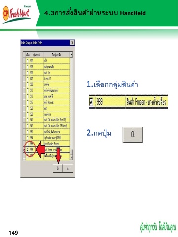 4.3กำรสั่งสินค้ำผ่ำนระบบ HandHeld 1.เลือกกลุ่มสินค้า 2.กดปุ่ม 149