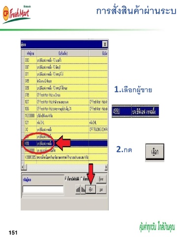 การสั่งสินค้าผ่านระบบ HandHeld 1.เลือกผู้ขาย 2.กด 151