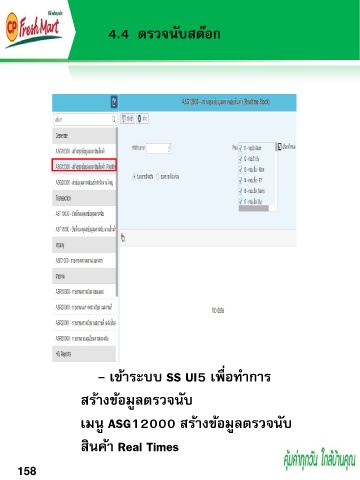 4.4 ตรวจนับสต๊อก - เข้ำระบบ SS UI5 เพื่อท ำกำร สร้ำงข้อมูลตรวจนับ เมนู ASG12000 สร้ำงข้อมูลตรวจนับ สินค้ำ Real Times 158