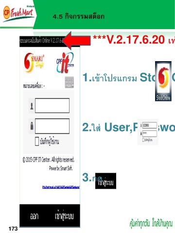 4.5 กิจกรรมสต็อก ***V.2.17.6.20 เท่านั้น*** 1.เข้าโปรแกรม StockOnline 2.ใส่ User,Password 3.กด 173