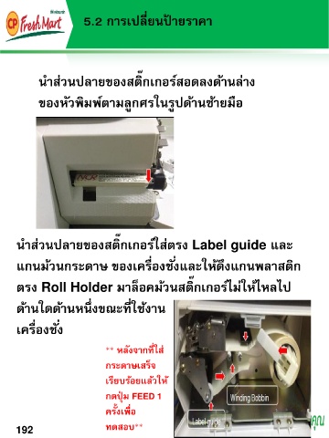 น ำส่วนปลำยของสติ๊กเกอร์ใส่ตรง Label guide และ