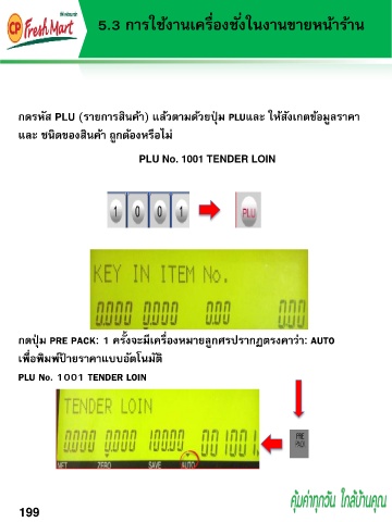 กดรหัส PLU (รำยกำรสินค้ำ) แล้วตำมด้วยปุ่ ม PLUและ ให้สังเกตข้อมูลรำคำ