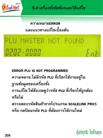 กำรแก้ไข:ให้สังเกตดูว่ำรหัส PLU ที่เรียกใช้ถูกต้อง