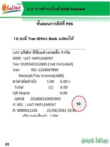 3.2 กำรช ำระเงินด้วยQR Payment ขั้นตอนกำรคีย์ที่ POS 18.จะมี Tran IDของ Bank แสดงให้ 83