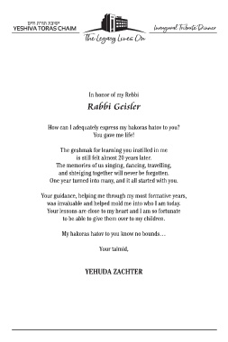 YESHIVA TORAS CHAIM Inaugural Tribute Dinner