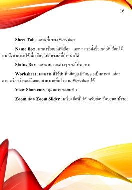 Worksheet : แผนงานที่ใช้บันทึกข้อมูล มีลักษณะเป็นตาราง แต่ละ
