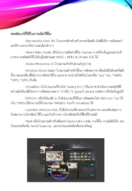 - Ulead Video Studio เป็นโปรแกรมตัดต่อวีดีโอ Capture ภาพที่น าสัญญาณผ่านเข้า